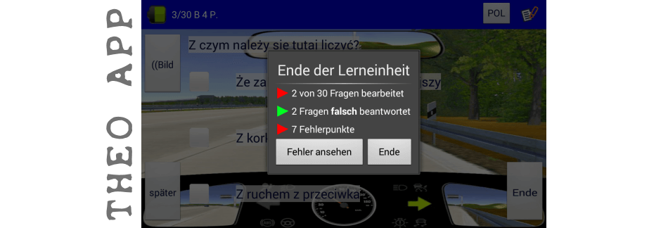 Hier gehts zum polnischen Führerschein App CodeBeispielbilder der Theo App in Polnisch